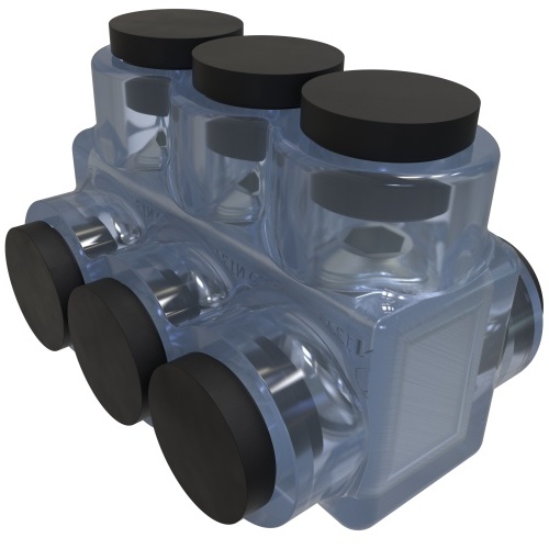 Ilsco ECTD-3-3/0 - ClearTap Insulated Aluminum Multi-Tap Connector, Conductor Range 3/0-6, 3 Ports, Dual Sided Entry, Tin Plated, UL, CSA
