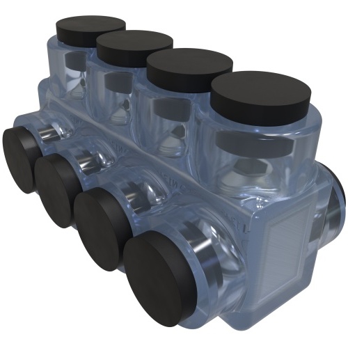 Ilsco ECTD-4-3/0 - ClearTap Insulated Aluminum Multi-Tap Connector, Conductor Range 3/0-6, 4 Ports, Dual Sided Entry, Tin Plated, UL, CSA