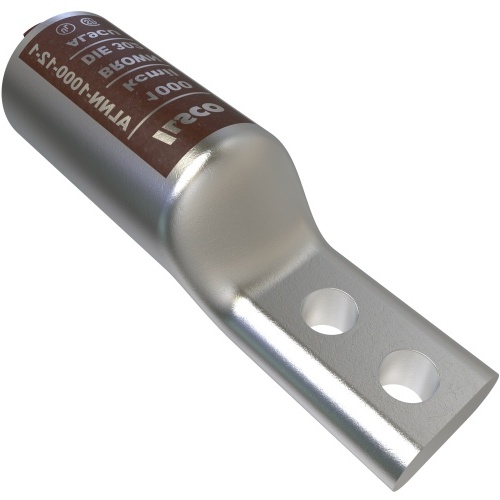Ilsco ALNN-1000-12-1 - Surecrimp Aluminum Compression Lug for 1000 kcmil conductors with 2 holes, 1/2in bolt size, 1in hole spacing. Narrow tang, long barrel, tin plated, UL/CSA/NEMA listed. Dual rated for 35 kV, 90°C. Suitable for stranded copper/aluminum. Includes DE-OX® technology. Mounting hole spacing: 1in. Not for direct burial.Ilsco's Die Index Number: P302.