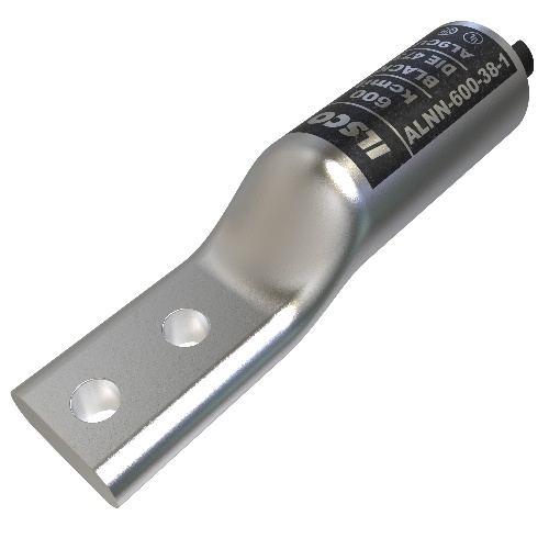 Ilsco ALNN-600-38-1 - Surecrimp Aluminum Compression Lug, Conductor Size 600, 2 Holes, 3/8in Bolt Size, 1in Hole Spacing, Narrow Tang, Long Barrel, No Sight Window, Tin Plated, UL, CSA
