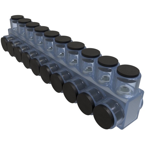 Ilsco ECTS-10-600 - ClearTap Insulated Aluminum Multi-Tap Connector, Conductor Range 600-4, 10 Ports, Single Sided Entry, Tin Plated, UL, CSA