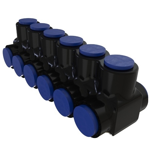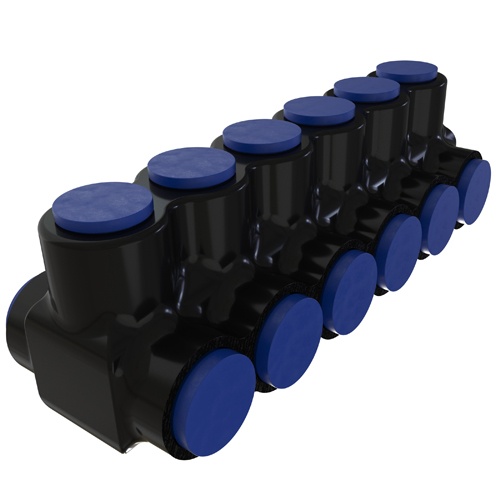 Ilsco PBTD-6-750-F - Nimbus4Flex Insulated Flexible Aluminum Multi-Tap Connector, Conductor Range 750-250, Flex 500-3/0 H,I,K 4/0-3/0 M 535.3-3/0 DLO, 6 Ports, Dual Sided Entry, Tin Plated, UL, CSA