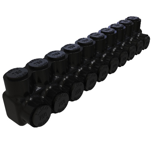 Ilsco PBTS-10-750 Multi-Tap Connector - Aluminum, 750-250 MCM, Stranded, 600 V, Black