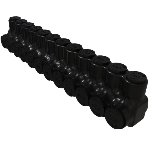 Ilsco PBTS-12-500 - The Nimbus Insulated Aluminum Multi-Tap Connector is a versatile solution for electrical connections, capable of accommodating conductor ranges from 600 kcmil to 4 Str. With UL and CSA certifications, 12 ports, and a temperature rating of 90°C, this black connector is suitable for a variety of applications. Dual rated and featuring DE-OX® material, it offers reliable performance and high-quality connections.