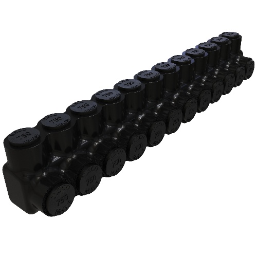 Ilsco PBTS-12-750 Multi-Tap Connector - Aluminum, 750-250 MCM, Stranded, 600 V, Black