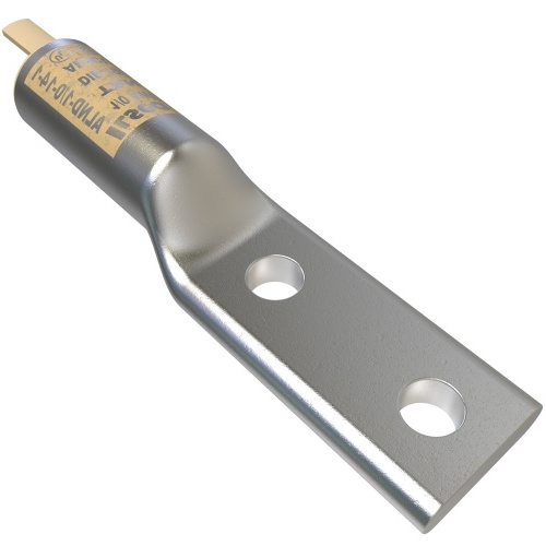Ilsco ALND-1/0-14-1 - Surecrimp Aluminum Compression Lug, Conductor Size 1/0, 2 Holes, 1/4in Bolt Size, 1in Hole Spacing, Long Barrel, No Sight Window, Tin Plated, UL, CSA