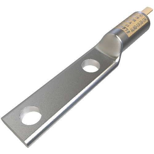 Ilsco ALND-1/0-38-134 - Surecrimp Aluminum Compression Lug, Conductor Size 1/0, 2 Holes, 3/8in Bolt Size, 1-3/4in Hole Spacing, Long Barrel, No Sight Window, Tin Plated, UL, CSA