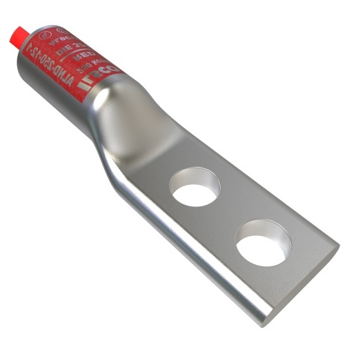 Ilsco ALND-250-12-1 - Surecrimp Aluminum Compression Lug, Conductor Size 250, 2 Holes, 1/2in Bolt Size, 1in Hole Spacing, Long Barrel, No Sight Window, Tin Plated, UL, CSA