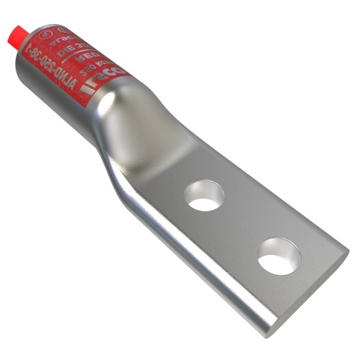 Ilsco ALND-250-38-1 - Surecrimp Aluminum Compression Lug, Conductor Size 250, 2 Holes, 3/8in Bolt Size, 1in Hole Spacing, Long Barrel, No Sight Window, Tin Plated, UL, CSA
