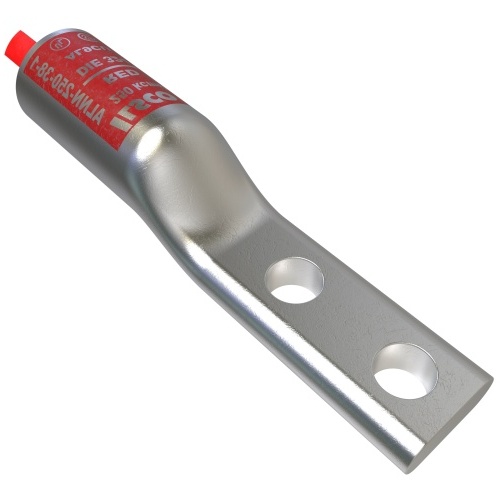 Ilsco ALNN-250-38-1 - Surecrimp Aluminum Compression Lug, Conductor Size 250, 2 Holes, 3/8in Bolt Size, 1in Hole Spacing, Narrow Tang, Long Barrel, No Sight Window, Tin Plated, UL, CSA