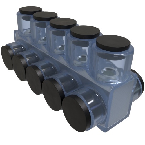 Ilsco ECTD-5-600 - ClearTap Insulated Aluminum Multi-Tap Connector, Conductor Range 600-4, 5 Ports, Dual Sided Entry, Tin Plated, UL, CSA