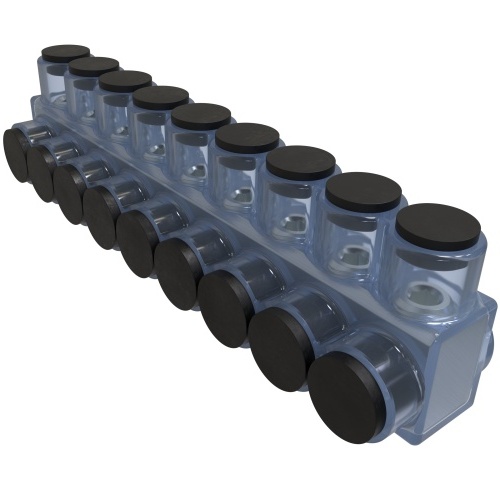 Ilsco ECTS-9-600 - ClearTap Insulated Aluminum Multi-Tap Connector, Conductor Range 600-4, 9 Ports, Single Sided Entry, Tin Plated, UL, CSA