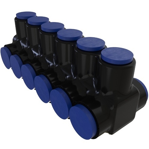 Ilsco PBTD-6-500-F - Nimbus4Flex Insulated Flexible Aluminum Multi-Tap Connector, Conductor Range 600-4, Flex 350-4 H,I,K 4/0-4 M 373.7-4 DLO, 6 Ports, Dual Sided Entry, Tin Plated, UL, CSA