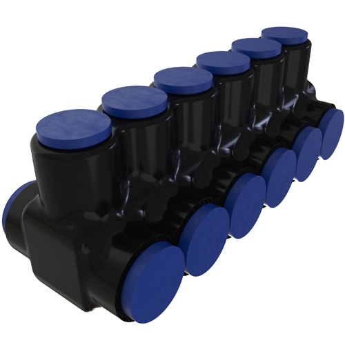 Ilsco PBTD-6-500-M-F - Nimbus4Flex Insulated Flexible Aluminum Multi-Tap Connector, Conductor Range 600-4, Flex 350-4 H,I,K 4/0-4 M 373.7-4 DLO, 6 Ports, Dual Sided Entry, Mountable, Tin Plated, UL, CSA