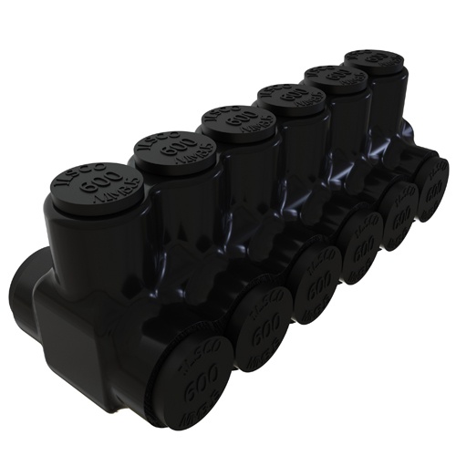 Ilsco PBTD-6-500-M-F Multi-Tap Connector - Aluminum, 600-4 AWG, Stranded, 600 V, Black