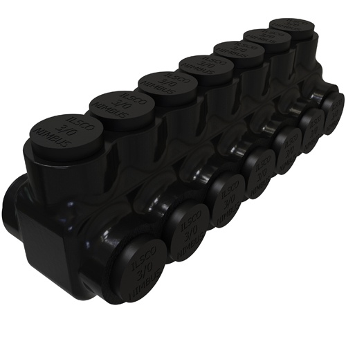 Ilsco PBTD-7-3/0 - Nimbus Insulated Aluminum Multi-Tap Connector, Conductor Range 3/0-6, 7 Ports, Dual Sided Entry, Tin Plated, UL, CSA