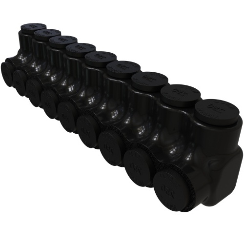 Ilsco PBTS-9-250-SR - Nimbus Insulated Aluminum Multi-Tap Connector, Conductor Range 250-6, 9 Ports, Single Sided Entry, Tin Plated, UL, CSA