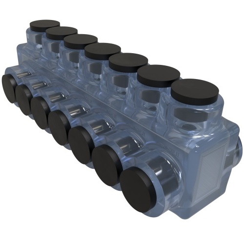 Ilsco ECTD-7-1/0 - ClearTap Insulated Aluminum Multi-Tap Connector, Conductor Range 1/0-14, 7 Ports, Dual Sided Entry, Tin Plated, UL, CSA