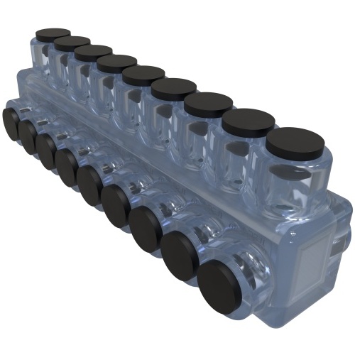 Ilsco ECTD-9-4 - ClearTap Insulated Aluminum Multi-Tap Connector, Conductor Range 4-14, 9 Ports, Dual Sided Entry, Tin Plated, UL, CSA