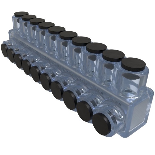 Ilsco ECTS-10-4 - ClearTap Insulated Aluminum Multi-Tap Connector, Conductor Range 4-14, 10 Ports, Single Sided Entry, Tin Plated, UL, CSA