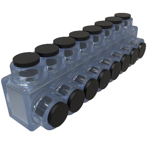 Ilsco ECTS-8-1/0 - ClearTap Insulated Aluminum Multi-Tap Connector, Conductor Range 1/0-14, 8 Ports, Single Sided Entry, Tin Plated, UL, CSA