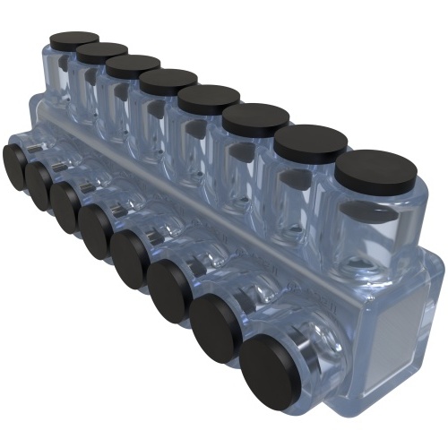 Ilsco ECTS-8-4 - ClearTap Insulated Aluminum Multi-Tap Connector, Conductor Range 4-14, 8 Ports, Single Sided Entry, Tin Plated, UL, CSA