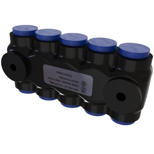 Ilsco PBTD-3-250-M-F Multi-Tap Connector - Aluminum, 250-6 AWG, Stranded, 600 V, 290 Amp, Black