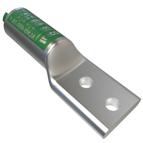 Ilsco ALND-400-38-1 - Surecrimp Aluminum Compression Lug, Conductor Size 400, 2 Holes, 3/8in Bolt Size, 1in Hole Spacing, Long Barrel, No Sight Window, Tin Plated, UL, CSA