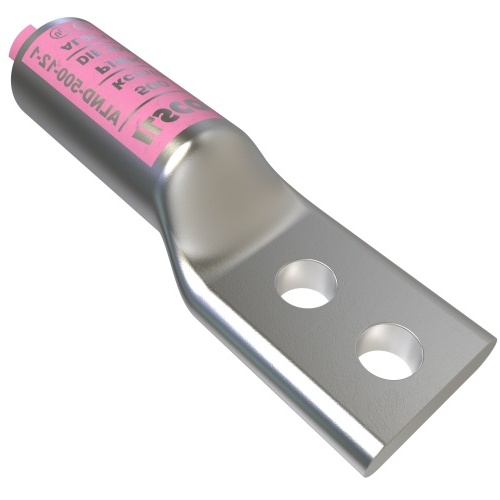 Ilsco ALND-500-12-1 - Surecrimp Aluminum Compression Lug, Conductor Size 500, 2 Holes, 1/2in Bolt Size, 1in Hole Spacing, Long Barrel, No Sight Window, Tin Plated, UL, CSA