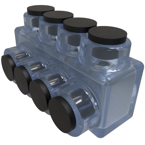 Ilsco ECTS-4-1/0 - ClearTap Insulated Aluminum Multi-Tap Connector, Conductor Range 1/0-14, 4 Ports, Single Sided Entry, Tin Plated, UL, CSA