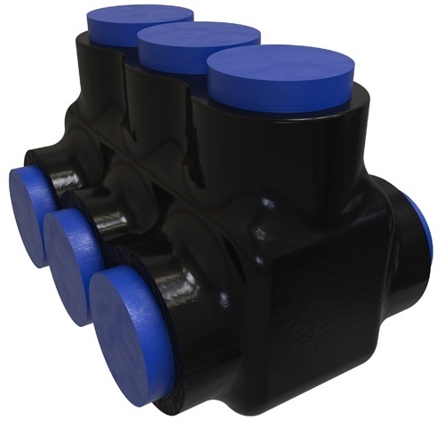 Ilsco PBTD-3-3/0-F - Nimbus4Flex Insulated Flexible Aluminum Multi-Tap Connector, Conductor Range 3/0-6, Flex 2/0-6 H,I,K,DLO 1-6 M, 3 Ports, Dual Sided Entry, Tin Plated, UL, CSA