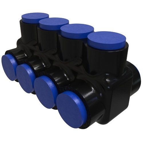 Ilsco PBTD-4-250-F - Nimbus4Flex Insulated Flexible Aluminum Multi-Tap Connector, Conductor Range 250-6, Flex 4/0-6 H,I,K 2/0-6 M 3/0-6 DLO, 4 Ports, Dual Sided Entry, Tin Plated, UL, CSA