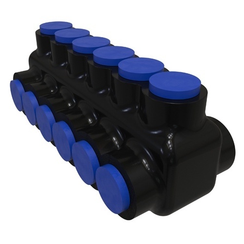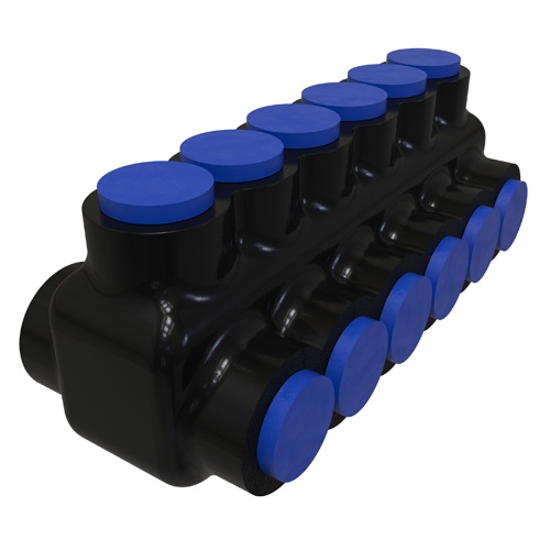 Ilsco PBTD-6-1/0-F - Nimbus4Flex Insulated Flexible Aluminum Multi-Tap Connector, Conductor Range 1/0-14, Flex 1-14 H,I,K,DLO 2-14 M, 6 Ports, Dual Sided Entry, Tin Plated, UL, CSA