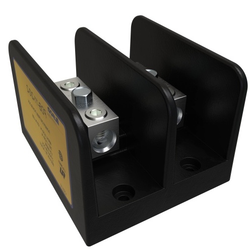 Ilsco PDB-11-2/0-2 - Power Distribution Block, 2 Pole with 1 port per pole on both line and load sides. Dual rated aluminum construction with tin finish, UL 1059 Recognized. 600V, 175 Amps. 2/0-14 CU/AL conductor range. Mounting hole spacing of 85.725mm. Internal hex drive. Suitable for various applications. Color: Black. Size: M.