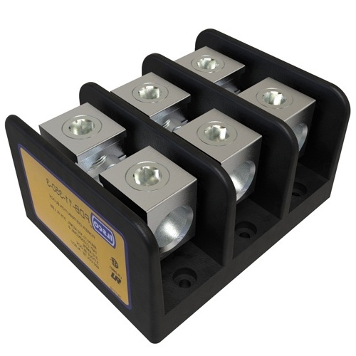 Ilsco PDB-11-350-3 - Power Distribution Block, Dual Rated, Line Conductor Range 350-6, Load Range 350-6, 1 Port Per Pole Line Side, 1 Port Per Pole Load Side, 3 Pole, UL, CSA
