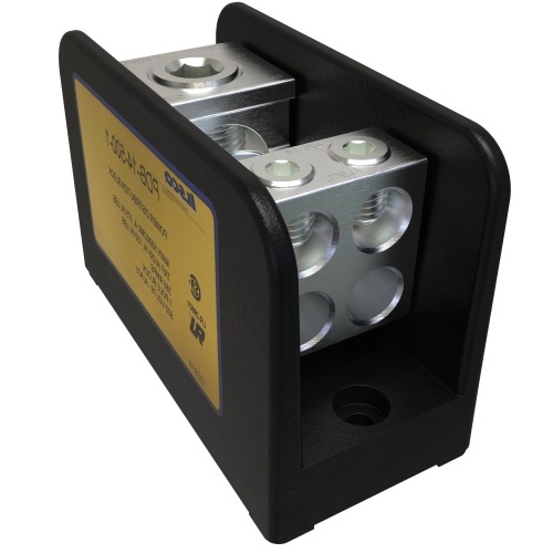 Ilsco PDB-14-500-1 - Power Distribution Block, Dual Rated, Line Conductor Range 500-4, Load Range 2/0-14, 1 Port Per Pole Line Side, 4 Ports Per Pole Load Side, 1 Pole, UL, CSA