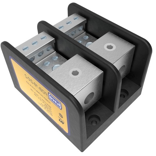 Ilsco PDB-16-2/0-2 - This Power Distribution Block is a Dual Rated, 2 Pole aluminum block with 1 port per pole line side and 6 ports per pole load side. It has a conductor range of 2/0-12 for line and 4-14 for load, with a voltage rating of 600V and temperature rating of 90°C. UL and CSA approved.
