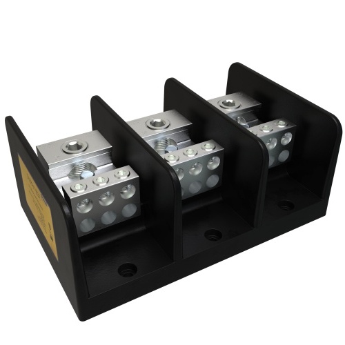 Ilsco PDB-16-500-3 - Power Distribution Block, Dual Rated, Line Conductor Range 500-6, Load Range 2/0-14, 1 Port Per Pole Line Side, 6 Ports Per Pole Load Side, 3 Pole, UL, CSA