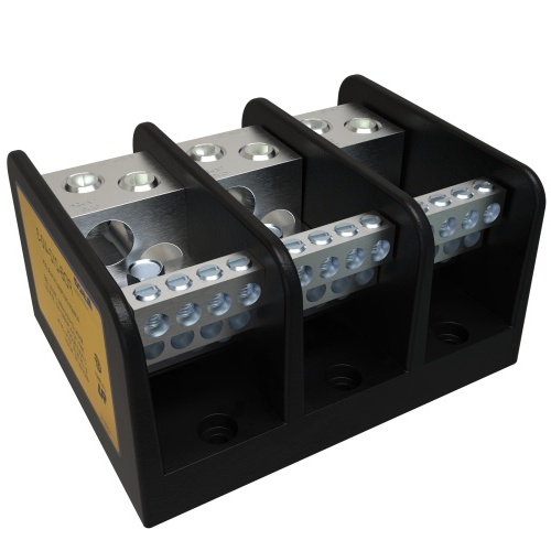 Ilsco PDB-212-4/0-3 - Power Distribution Block, Dual Rated, Line Conductor Range 4/0-6, Load Range 4-14, 2 Ports Per Pole Line Side, 12 Ports Per Pole Load Side, 3 Pole, UL, CSA