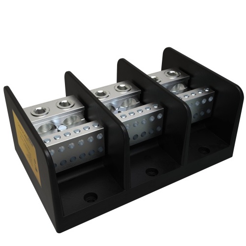Ilsco PDB-212-500-3 Power Distribution Block - Aluminum, 500-4 AWG, Solid, 600 V, 1/4", 350 Amp, Black