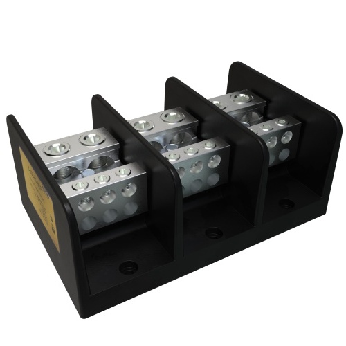 Ilsco PDB-26-500-3 - Power Distribution Block, Dual Rated, Line Conductor Range 500-4, Load Range 2/0-14, 2 Ports Per Pole Line Side, 6 Ports Per Pole Load Side, 3 Pole, UL, CSA