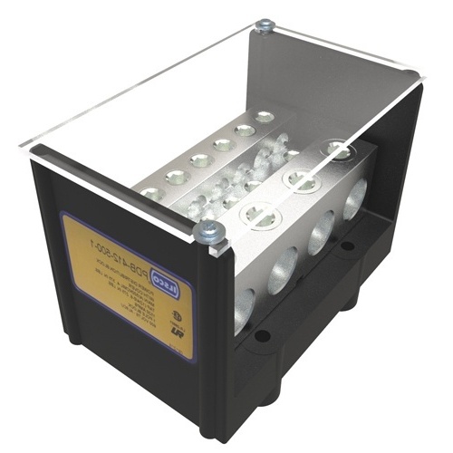 Ilsco PDB-412-500-1 - Power Distribution Block, Dual Rated, Line Conductor Range 500-4, Load Range 4/0-6, 4 Ports Per Pole Line Side, 12 Ports Per Pole Load Side, 1 Pole, UL, CSA, Includes Cover