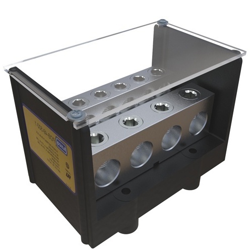 Ilsco PDB-49-500-1 - Power Distribution Block, Dual Rated, Line Conductor Range 500-4, Load Range 350-6, 4/0-6, 4 Ports Per Pole Line Side, 9 Ports Per Pole Load Side, 1 Pole, UL, CSA, Includes Cover