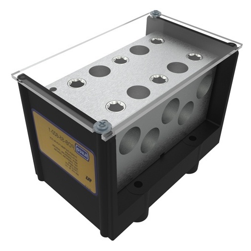 Ilsco PDB-55-600-1 - Power Distribution Block, Dual Rated, Line Conductor Range 600-250, Load Range 600-250, 5 Ports Per Pole Line Side, 5 Ports Per Pole Load Side, 1 Pole, UL, CSA, Includes Cover