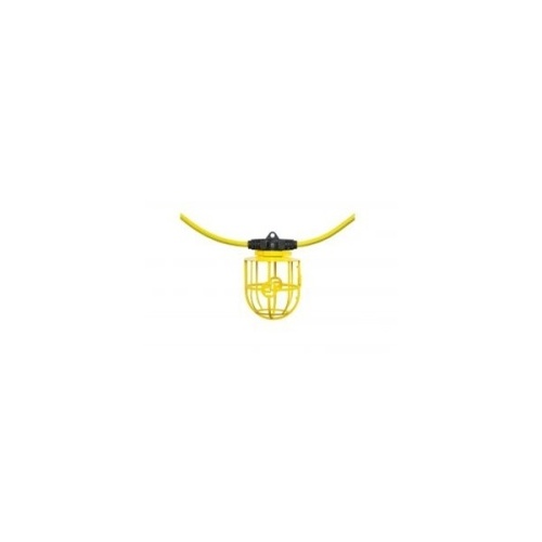 Ericson 143100-W - Stringlight, E-Lite W/ 100ft 14/3 Yel SJTW Cable W/ 10 Lights @ 10ft Spacing. Pri = NEMA 5-15p & Sec = NEMA 5-15c. Lamp Type = LED (Not Included) W/ Metal Guards - 8" x 20" x 20" (HxWxL)