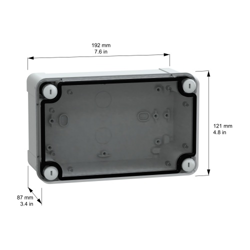 Schneider Electric NSYTBS19128T - ABS - Captive screw flat outside sealed area - IK07 - IP66 - 7.52" x 4.76" x 3.43" (HxWxD)