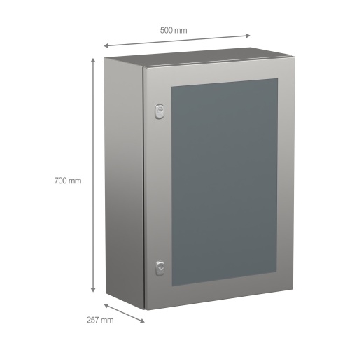 Schneider Electric NSYS3X7525T - 304 Stainless Steel - 2 points lock, 3 mm double-bar - IP66 - 1 Door: Glass - Without Mounting Plate - Without Gland Plate - 27.56" x 19.69" x 9.84" (HxWxD)