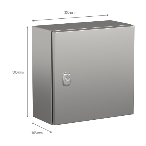 Schneider Electric NSYS3X3315 - 304 Stainless Steel - 3 mm double-bar lock - IP66 - 1 Door: Solid - Without Mounting Plate - Without Gland Plate - 11.81" x 11.81" x 5.91" (HxWxD)