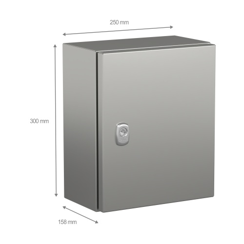 Schneider Electric NSYS3X302515 - 304 Stainless Steel - 3 mm double-bar lock - IP66 - 1 Door: Solid - Without Mounting Plate - Without Gland Plate - 11.81" x 9.84" x 5.91" (HxWxD)