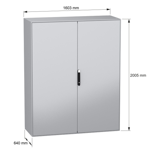 Schneider Electric NSYSM2016602DP - Galvanized Steel - 4 points lock, handle with 5 mm double bar insert - 2 Door: Solid - Plain Steel - Standard - 78.74" x 62.99" x 23.62" (HxWxD)